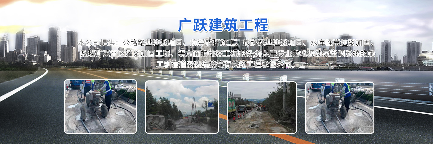 徐州廣躍建筑工程有限公司,公司成立于2010年,有專業(yè)施工人員50人,從事專業(yè)加固注漿施工。 本公司提供:公路路基注漿加固、抗浮錨桿施工、鐵路路基注漿加固、水庫帷幕注漿加固、及煤礦采空區(qū)灌漿加固工程、等方面的鉆探工程服務(wù);并從事專業(yè)的地源熱泵空調(diào)系統(tǒng)的施工和管道安裝連接等有關(guān)的工程承包公司。 公司成立以來一直專注于地質(zhì)鉆井工作,技術(shù)力量雄厚、設(shè)備先進:擁有專業(yè)的機械地質(zhì)鉆井精英隊伍;并具有GSY --150鉆機30余臺、GSY---200鉆機20余臺、專業(yè)回填封孔砂漿泵4臺等機械設(shè)備。公司稟承“優(yōu)質(zhì)的工程、優(yōu)惠的價格、優(yōu)良的售后服務(wù)”的經(jīng)營理念,以“客戶滿意”為原則,著力打造一支高效、專業(yè)、信譽的工程服務(wù)團隊。 具體服務(wù)項目:工程施工降水井、水源空調(diào)井、地源熱泵井、機鉆深井(工廠專用井)、石頭井、飲用水井、農(nóng)田井、地基降水處理、大型基坑降水、地下室、車庫以及橋梁注漿加固等業(yè)務(wù)。可用于廠生產(chǎn)用水,機械冷卻用水和生活用水,用水量可根據(jù)貴公司的需求量身訂做。